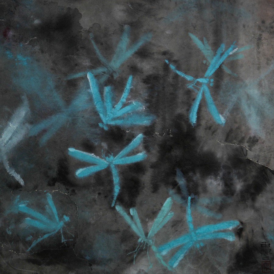 Dragonfly, Chinese pigments on xuan paper, 2024