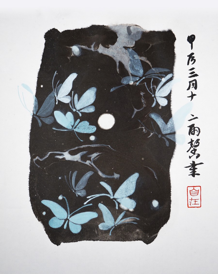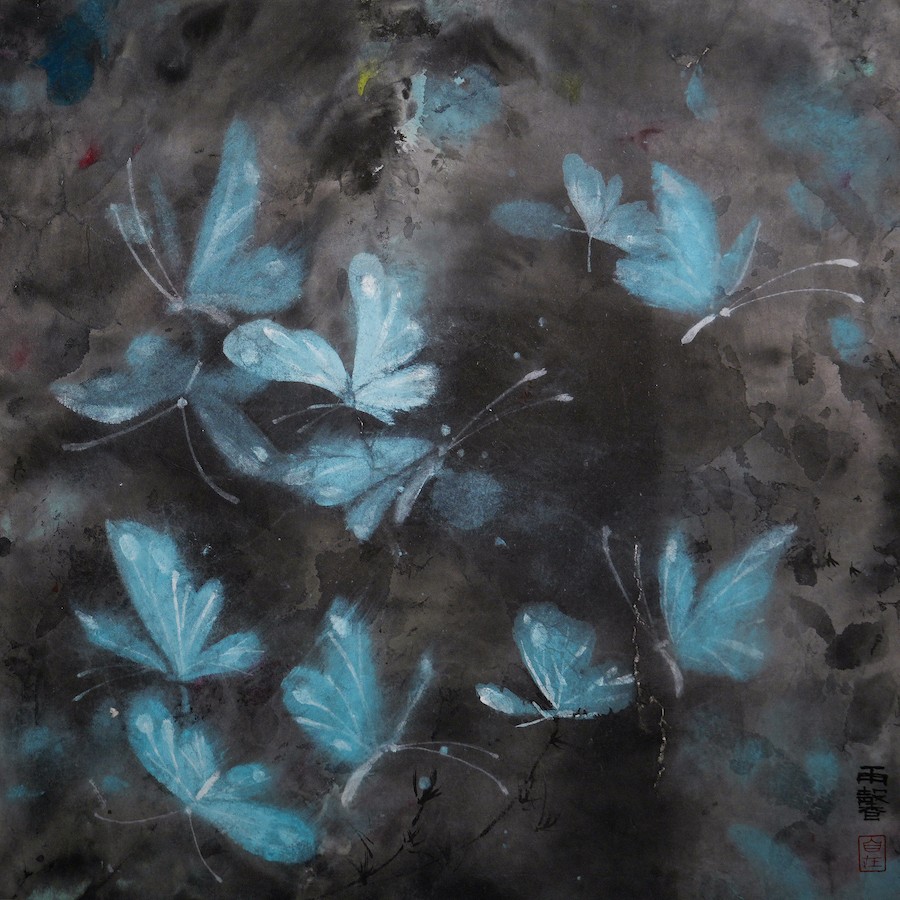 Butterfly 01, Chinese pigments on xuan paper, 2024