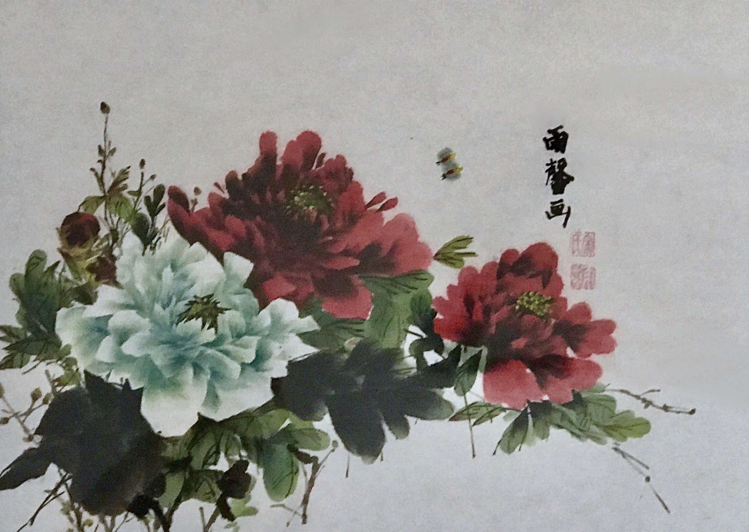 Chinese Peony, Chinese pigments on xuan paper, 2015 (Sold)