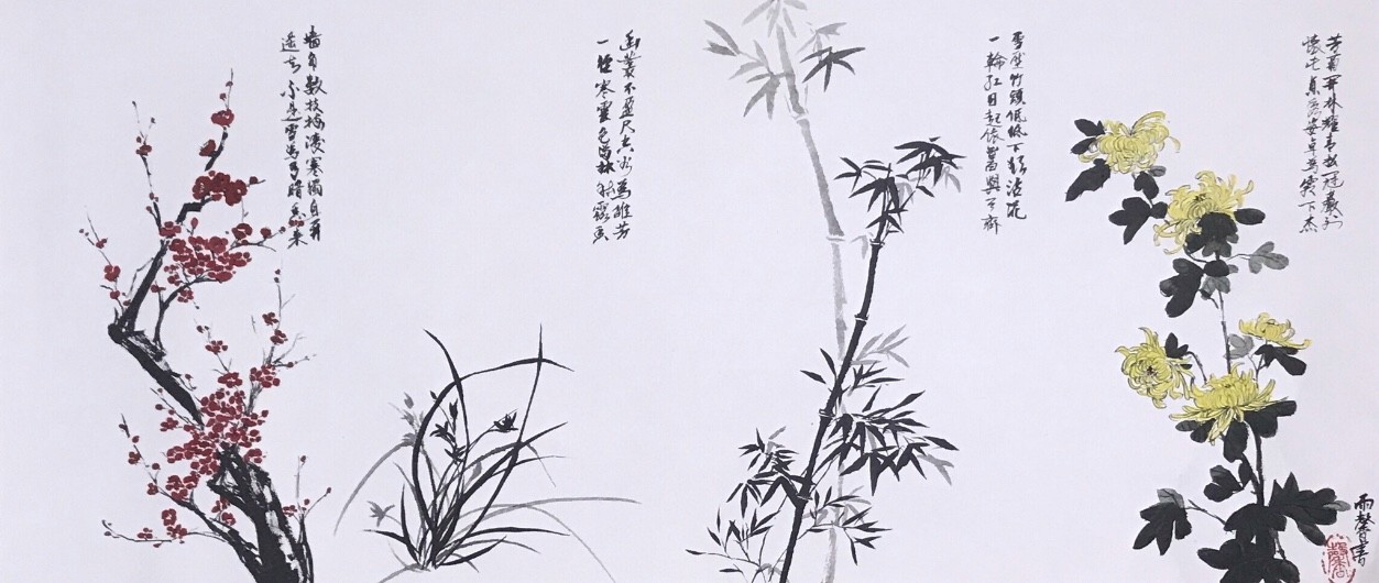 Four Gentlemen, Chinese pigments on xuan paper, 2018 (Sold)