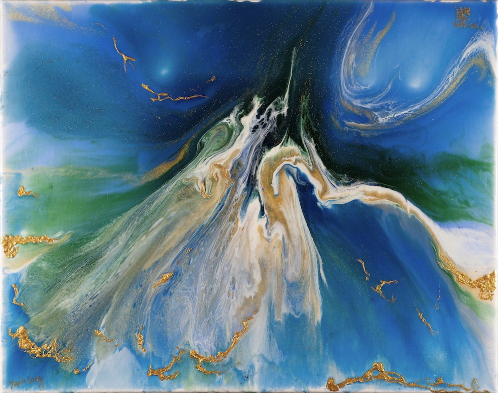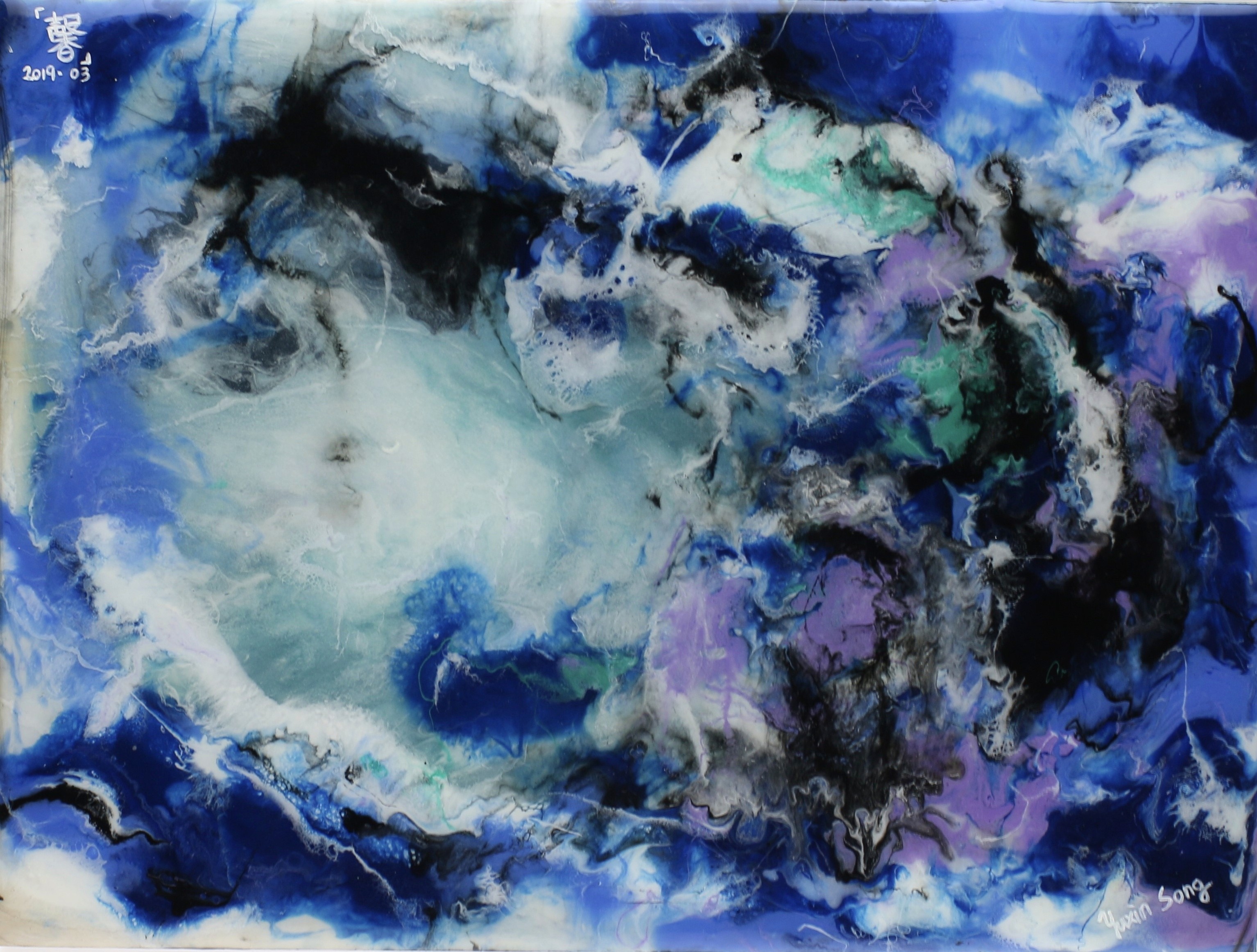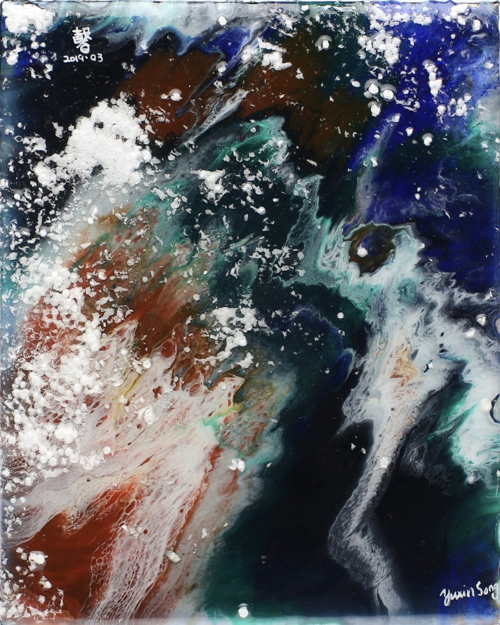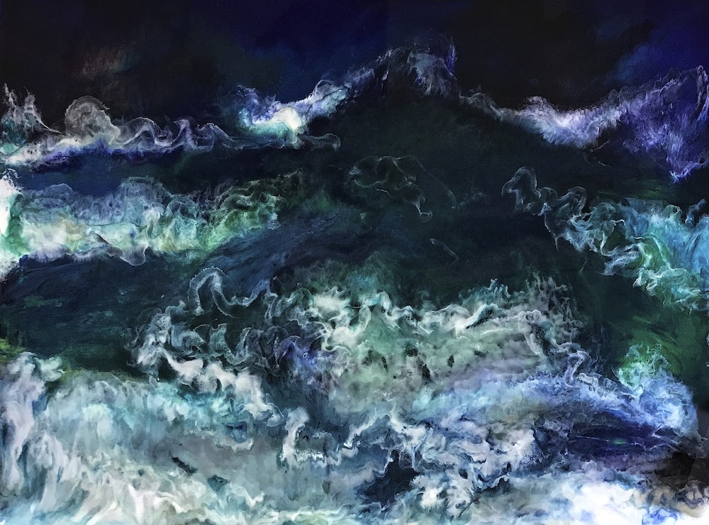 Ocean 02, resin on canvas, 32” x 24”, 2020 (Sold)