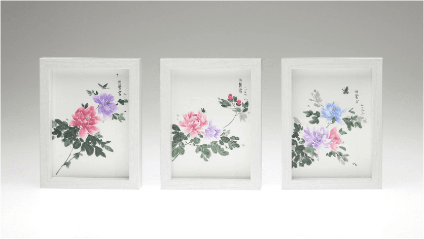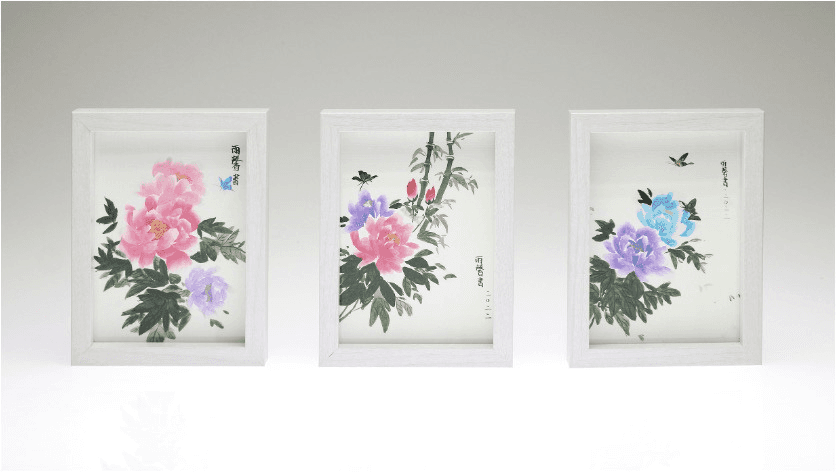 Chinese Peony 01–03, Chinese pigments on watercolor paper, 15.2 × 20.2 cm each, 2022